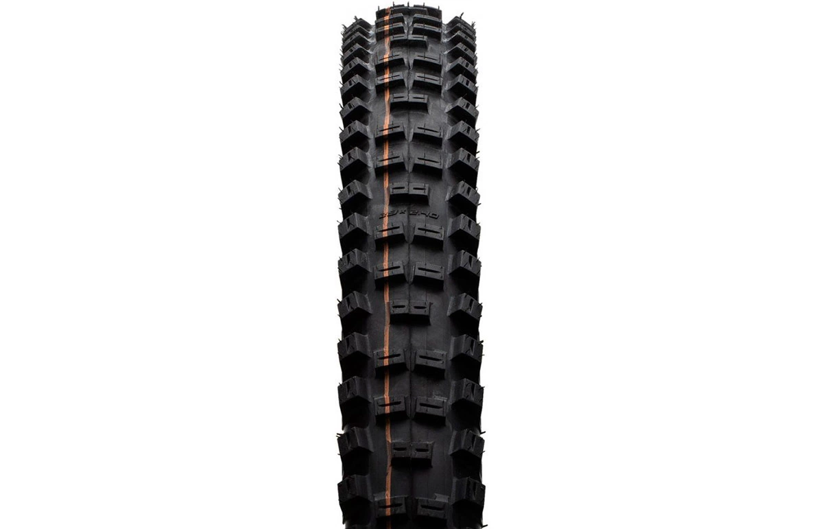 - |Description| Dans le segment Gravity, le Big Betty est le pneu arrière le plus utilisé par les riders. Cette version Super Gravity il convient parfaitement à une pratique enduro.Plus léger que le Super Downhill, il doit cela à une carcasse 67 EPI moins dense. Le rendement est supérieur sur les portions à la pédale. Cette carcasse dispose néanmoins de 4 couches de renforts, dune tringle souple kevlar et dun renfort de stabilisation Apex sur les flancs.Le mélange de gomme Addix Soft assure bonne durée de vie et un grip très satisfaisant.Associé au système de crampons larges et anguleux et à un épaulement très travaillé ladhérence est parfaitement assurée car cette structure engendre peu de déformation en virage.Véritable référence dans lunivers MTB, le Big Betty brille par sa structure et ses composants haut de gamme.Spécifications techniques : Dimensions : 29 X 2.4 Carcasse : SUPER GRAVITY 67 EPI Gomme : Addix Soft Utilisation : Enduro Tringle souple kevlar Tubeless Easy Poids : 1295g Charge maxi : 125 kgLien constructeur :