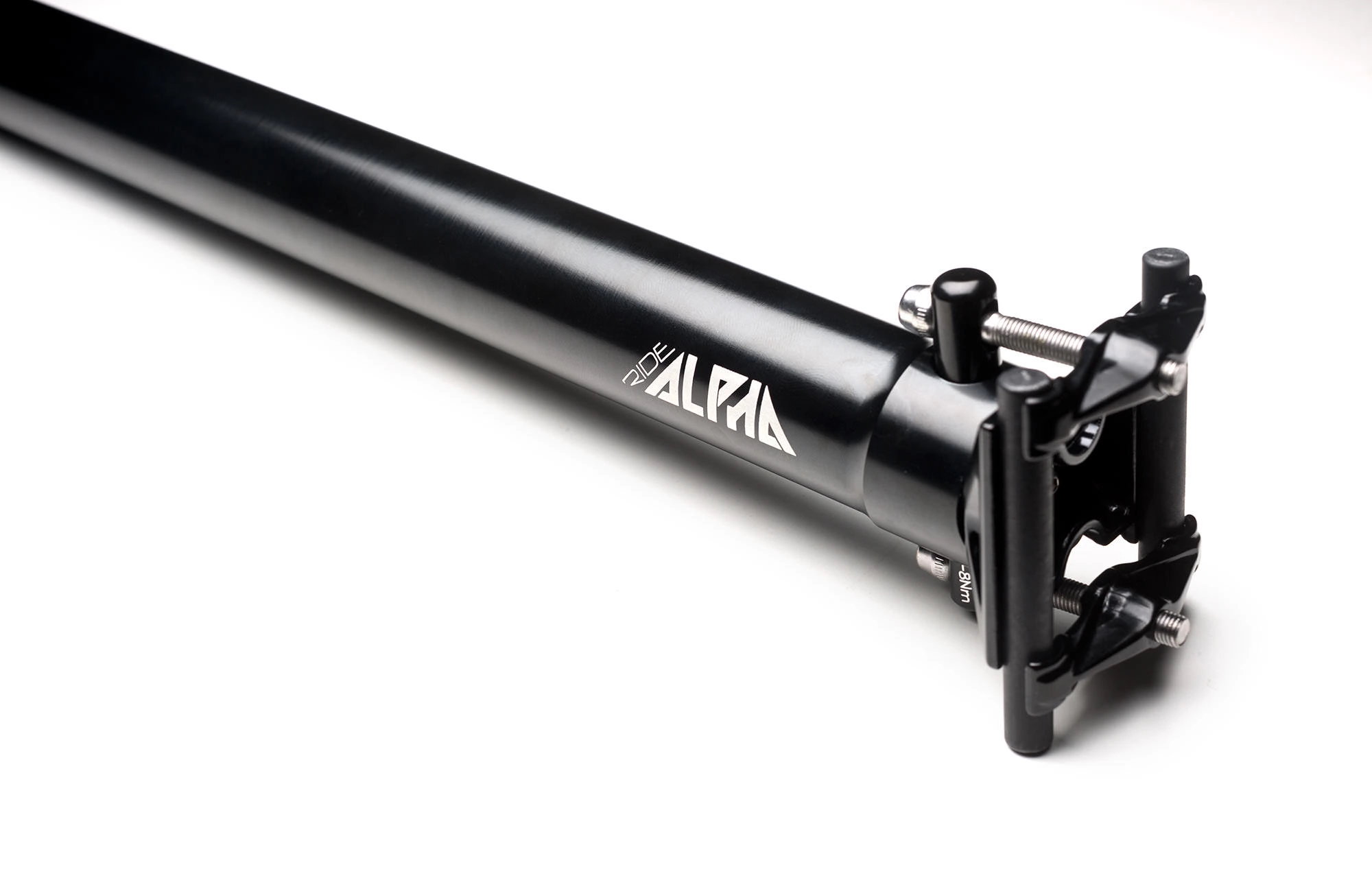 Cette tige de selle est anodisée couche dure, ce qui la rend encore plus robuste face aux traces et rayures.Le logo est lui gavé au laser, comme pour lensemble des produits RIDE ALPHA, une fois de plus pour obtenir une finition durable dans le temps.